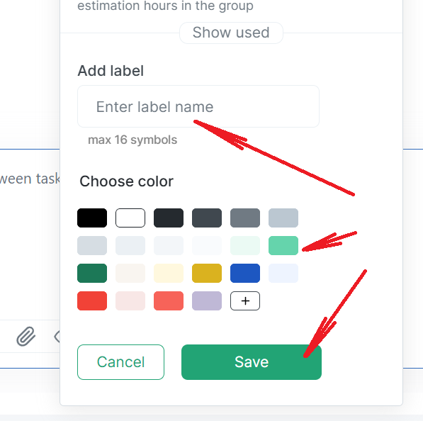 Enter the label name, choose the label colour, and press the ‘Save’ button: