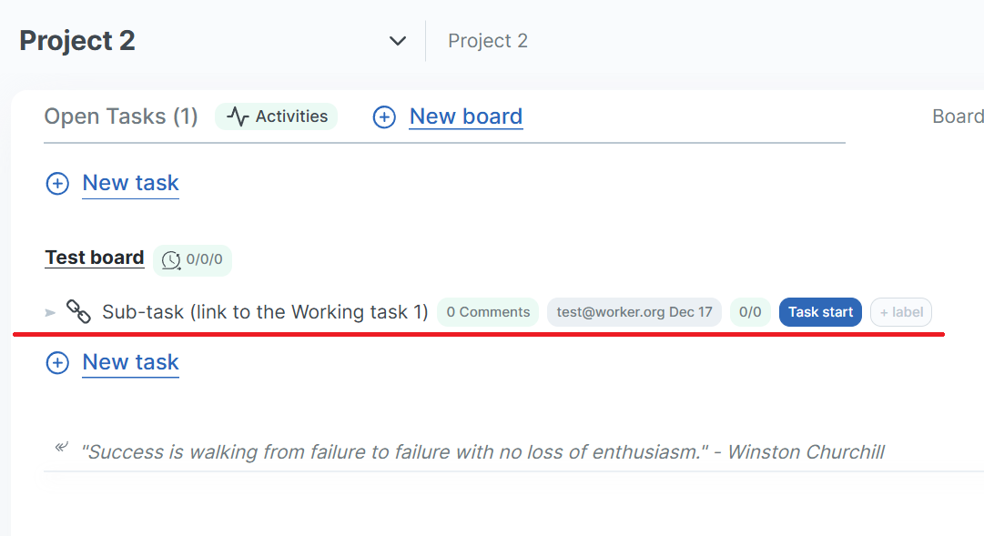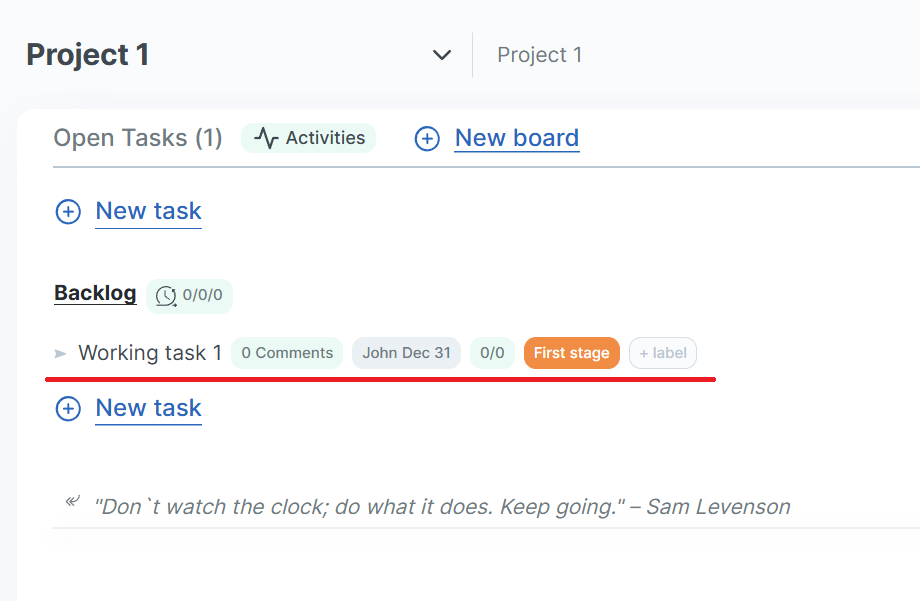 For example, you have a task named Working task 1 in Backlog board of Project 1: