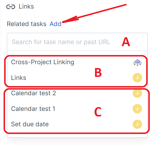 You can manually add a link to any other task or project. Press the ‘Add’ button to add a task.