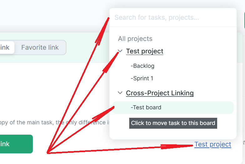 You can add a link to this task in different locations. At the same time, the task itself is not moved from the current board. Press the ‘Add’ button to add a link.