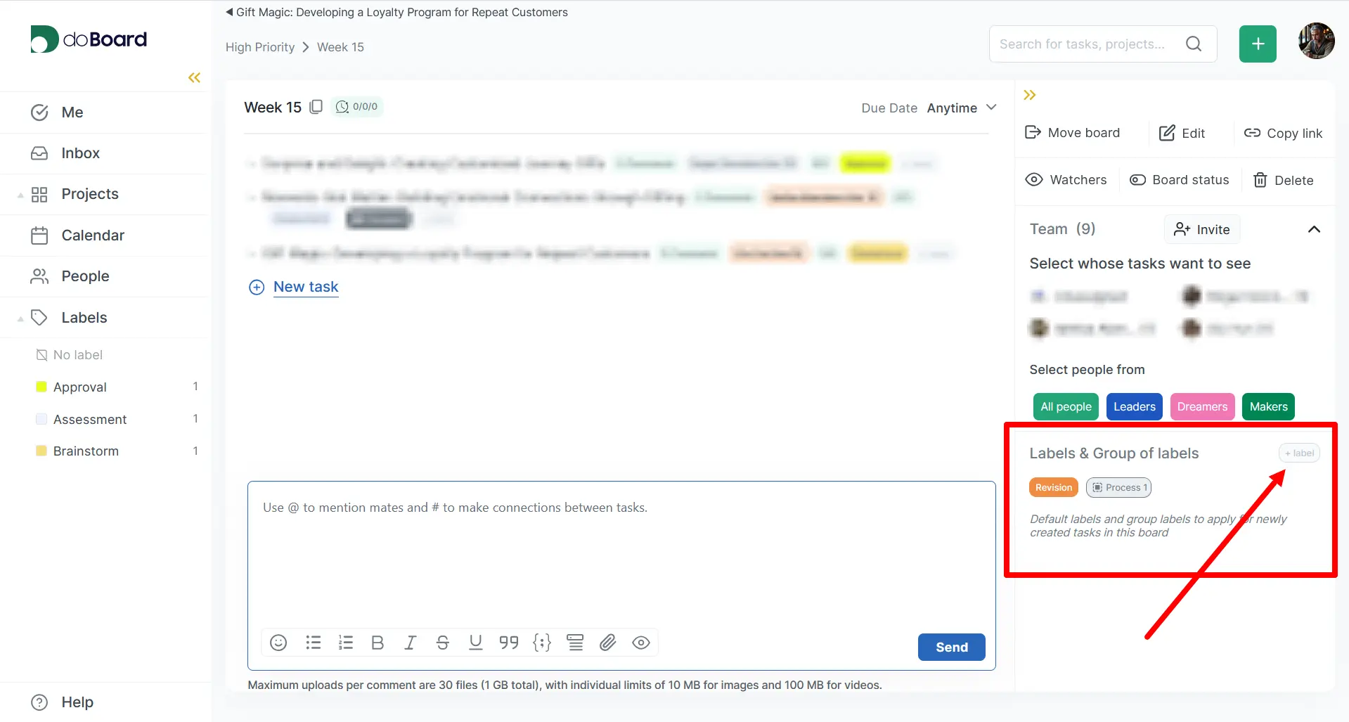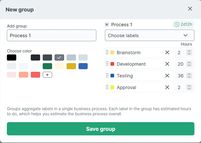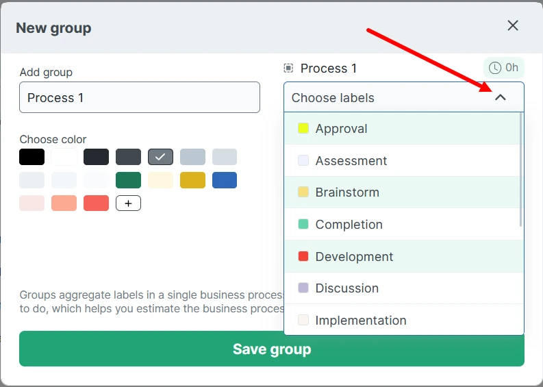 Next to the task name, click the “+ label” button, then “New group.”