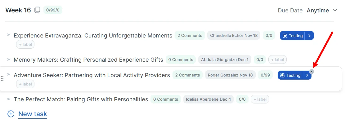 To remove a tag group from a task, hover over it and click the cross in the corner.