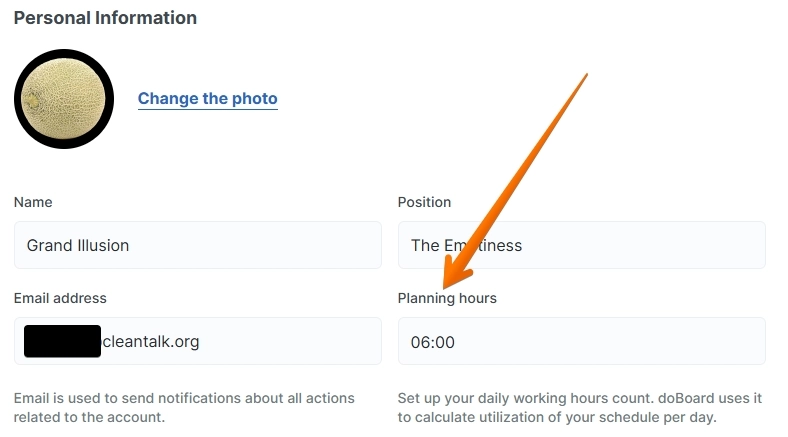 To start tracking your working hours, please set your number of working hours per day in your profile settings: